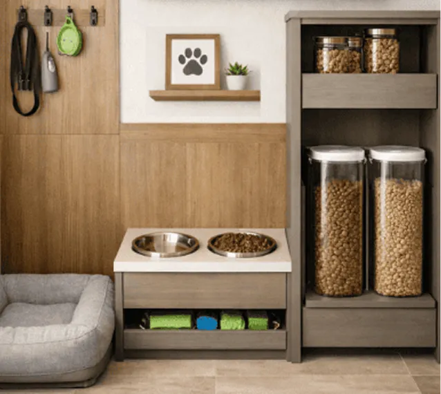 We add durable finishes, pet stations, and thoughtful storage so four-legged guests feel welcome while protecting your home and maintaining elegance.